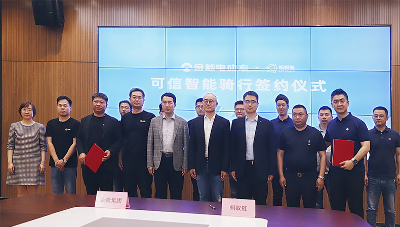 此次合作,雙方將在區塊鏈智能技術、多元消費服務方案、數字化出行等多個維度展開,通過區塊鏈+物聯網技術賦能,構建專屬電動出行智能化生態。金箭將采用螞蟻軟硬件一體的智能化方案,以車身“通電即上鏈”的純定制化可信智能模塊,幫助電動兩輪出行的用戶實現智能解防、一鍵開鎖、鳴笛尋車等功能,帶來更加智能化的出行體驗,進一步夯實提升金箭智能化生態體系的建設。